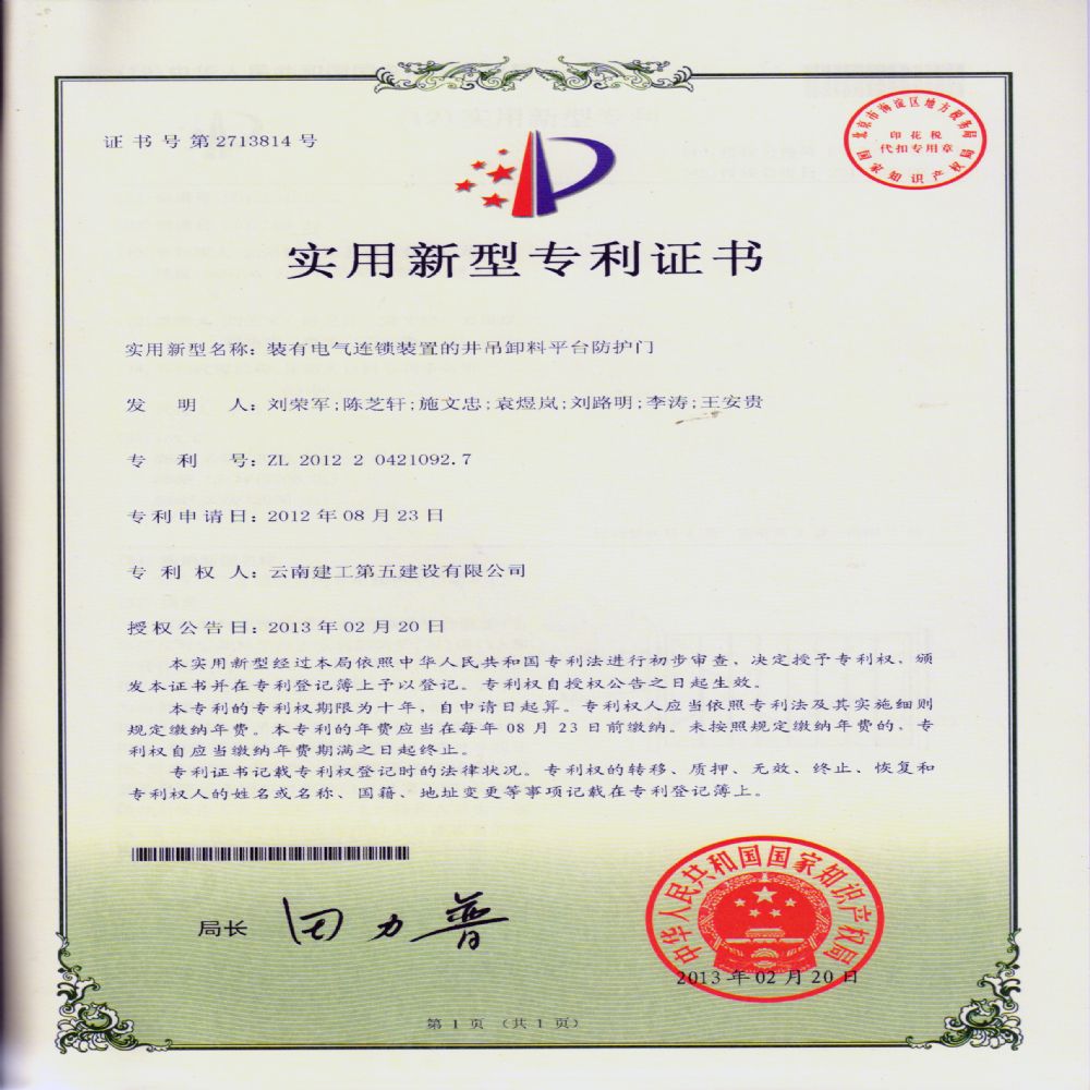 裝有電氣連鎖裝置的井吊卸料平臺防護(hù)門