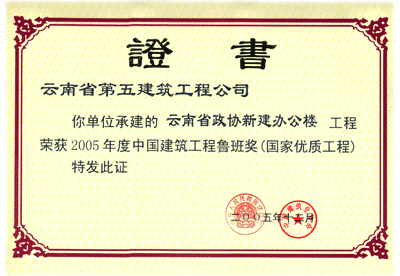 昆明市第一人民醫(yī)院外科住院大樓—2005年度“AAA級安全文明標(biāo)準(zhǔn)化誠信工地”
