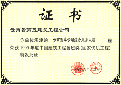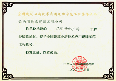 昆明建設(shè)局2000年度先進(jìn)企業(yè)